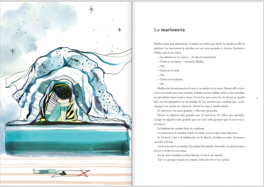 La abuelita de Malka ha emprendido un largo viaje en barca. Algunas personas le dicen a Malka que se ha ido a ver a Dios. La niña, con su marioneta, decide irse en busca de Dios para saber si existe y preguntarle por su abuela. En ese viaje encontrará distintas formas de estar en el mundo, muchas preguntas y muy pocas respuestas. Pero sin duda será un viaje que la transformará.