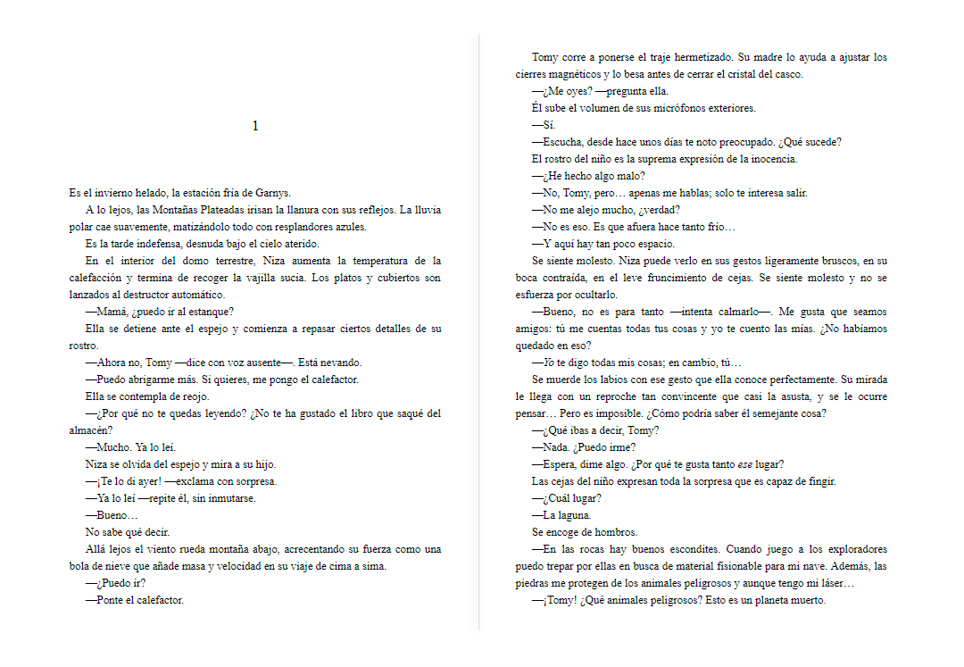Al desaparecer su padre, dos años atrás, Tomy y su madre, Niza, se han quedado varados y solos en Garnys —un planeta congelado y desierto— en espera de ser rescatados para volver a la Tierra. Extrañas voces los acosan y los sumergen en el miedo y la desconfianza, pero un giro sorprendente cambiará sus destinos. El terror y la esperanza se mezclan en esta historia de ciencia ficción y fantasía que podrán disfrutar tanto los jóvenes lectores como los adultos.