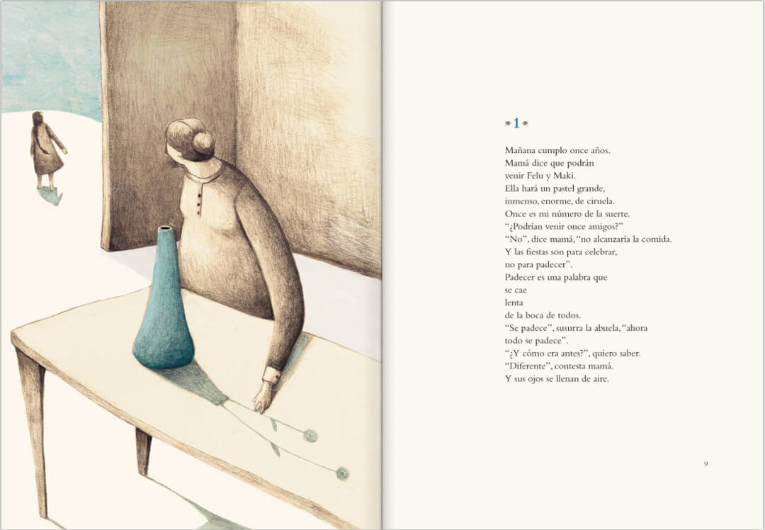 Laina sabe que tiene once años; que sus mejores amigos son Maki y Felu; que hay que cuidarse del sol, del viento y de los hoyos negros de la viruela; que a veces le da hambre, mucha hambre, hasta que piensa en el cielo, y que su papá se fue lejos. Pero también sabe que cada vez que sopla una de las flores llamadas diente de león, sus sueños llegan a donde ella desea. Y entonces todos los deseos que guarda adentro, muy adentro, suceden.