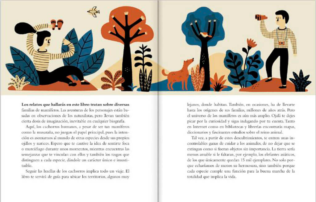 Un libro sobre el nacimiento de diversos mamíferos, en el que cada animal es el protagonista de la aventura de nacer: ballenas, dromedarios, ornitorrincos, jirafas, musarañas y otras crías son vistas muy de cerca, en su propio hábitat, y relatan las dificultades a las que se enfrentan, así como la manera en que se relacionan con los seres humanos.
