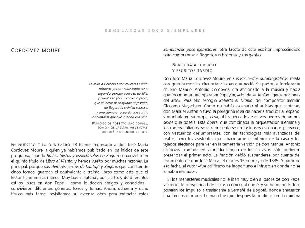 Publicación donde están seleccionados diversos textos de la extensa obra del autor, recopiladas como ''Semblanzas poco ejemplares'', que dan muestra de la picaresca local que permite comprender a Bogotá, sus historias y sus gentes.