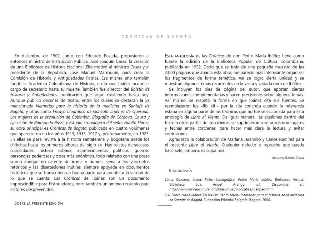 Esta antología tiene como fuente la edición de la Biblioteca Popular de Cultura Colombiana, publicada en 1952 y contiene una muestra de las más de 2.000 páginas originales, organizadas de acuerdo a temas comunes en los textos.