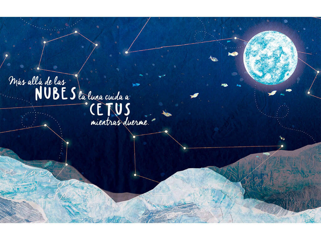 Cetus es una ballena que durante las noches sale a navegar por el mundo. Nada entre las calles nocturnas mientras vigila el sueño de los humanos. Esta leyenda que reinterpreta Jenna Graham es mágica y encantadora.