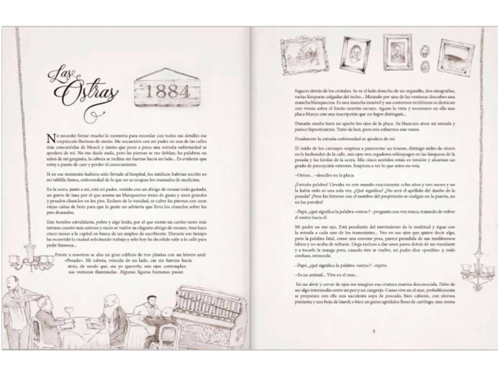 ''Cinco cuentos de Chejov con los que se pretende englobar todo el universo del autor ruso. Se trata de Las ostras, La muerte de un funcionario, La conversación del borracho con el diablo sobrio, Relato de la señorita N. N. y Tristeza, relatos que le llegan al alma a cualquier persona porque tratan sobre sentimientos y situaciones que todos hemos vivido: las ganas de contar un dolor que tenemos dentro y no encontramos a quién; la necesidad desmedida de disculparnos una y otra vez hasta el punto de volvernos molestos, y el hambre, la fantasía y la imaginación que tuvimos de niños''. Simón Posada Tamayo