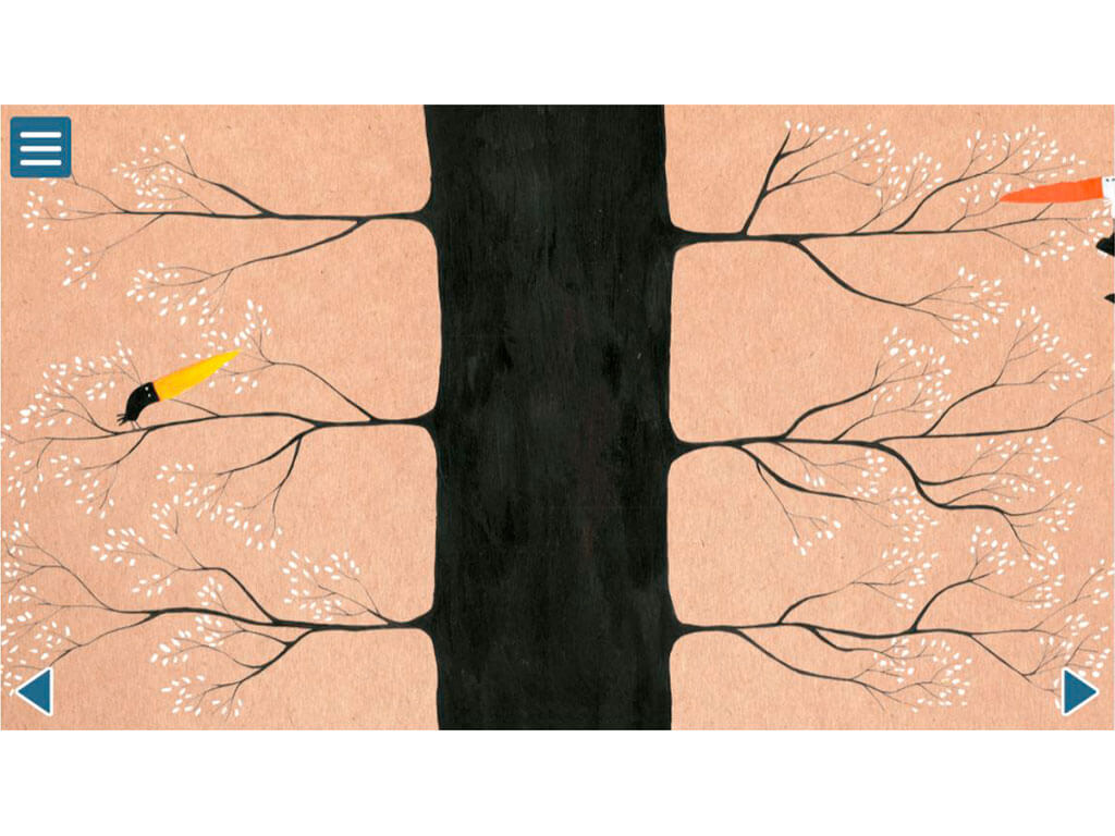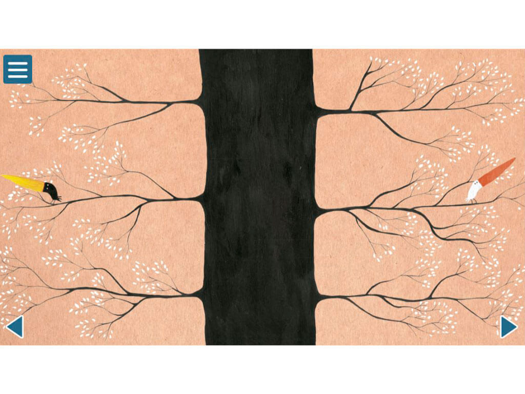 Dos pajaritos es un libro sin palabras, la narración y el hilo de la historia está completamente a cargo de las ilustraciones, en ellas se muestra la competencia (tranquila en principio) de dos pájaros por llenar de objetos su costado del árbol, poco a poco las escenas se hacen complejas y con ellas la historia deja la tranquilidad inicial para convertirse en un gran lío, hasta llegar a un final inesperado pero consecuente y realista.