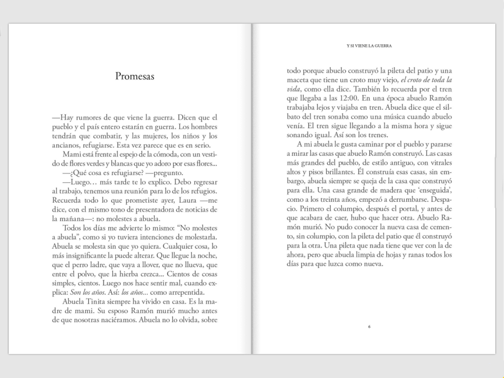 La existencia apacible y hasta monótona de un pueblo, cambia de un momento a otro debido a la guerra. Los hombres se van a luchar, y desde entonces la vida es una lenta espera a través de los ojos de Laura, una niña reflexiva y disparatada que cree en el mar, en el futuro y en la paz, y añora que las cosas vuelvan a ser como antes. Un relato que logra sobreponer la inocencia al horror de la guerra, como un pasaje hacia la esperanza en un presente incierto.