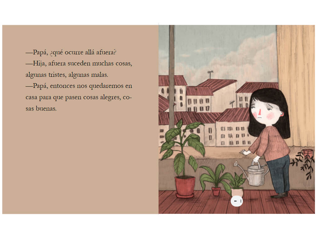 En esta micronovela ilustrada las puertas que nos separan, las paredes que nos privan de la libertad, los silencios que nos asfixian, los temores que aguardan su oportunidad, se desvanecen ante la sensibilidad de una chica que nos lleva a comprender el poderoso valor de las cosas que parecían insignificantes, la importancia de aquellos resquicios de nuestro mundo interior, donde resplandece la vida. Después de recorrer sus bellas y a la vez enigmáticas ilustraciones, nuestras habitaciones y también los horizontes que divisamos desde nuestras ventanas, cobrarán un nuevo sentido.