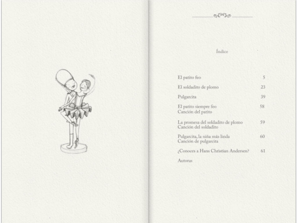 Este libro es una oportunidad para disfrutar en familia de un clásico de todos los tiempos. Cada historia escrita en verso, invita a la lectura en voz alta y a cantar con las canciones inspiradas en «El Patito feo, El valiente soldadito de plomo y Pulgarcita». Tres historias que han traspasado fronteras y siglos, y que en esta versión, a través de la música y la poesía, construyen un maravilloso puente para nuevos lectores.