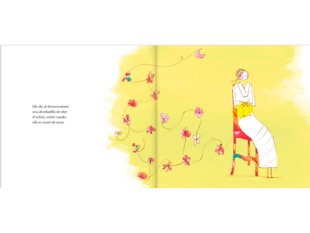 Álbum poético ilustrado con la melancolía de los versos que el gran poeta cubano dedicó a María García Granados. Los comentarios de la obra están a cargo de Carmen Matute, Premio Nacional de Literatura de Guatemala 2015. Seleccionado por el Ministerio de Educación de Guatemala para su programa Leamos Juntos y por el Ministerio de Educación de Chile.