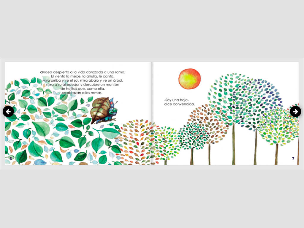 Anaea despierta a la vida agarrada a una rama. Mira a su alrededor y descubre un montón de hojitas, que como ella se abrazan a la rama, pero ¿será que Anaea es una hojita más?