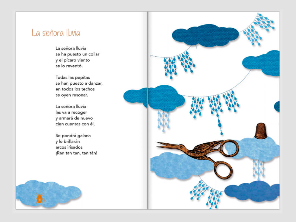 Una mirada infantil, todavía asombrada y curiosa, para mostrar a los pequeños el misterio que ofrece la naturaleza: la lluvia y el agua; los insectos y los escarabajos; las ranas, los caracoles y las zarigüeyas. Seres que saben ocultarse, secretos, simplemente porque no se esconden, porque habitan tan cerca de nosotros que a veces nos olvidamos de ellos. Y esa, precisamente, es la tarea del poema: rescatarlos para que volvamos a verlos como de verdad son.