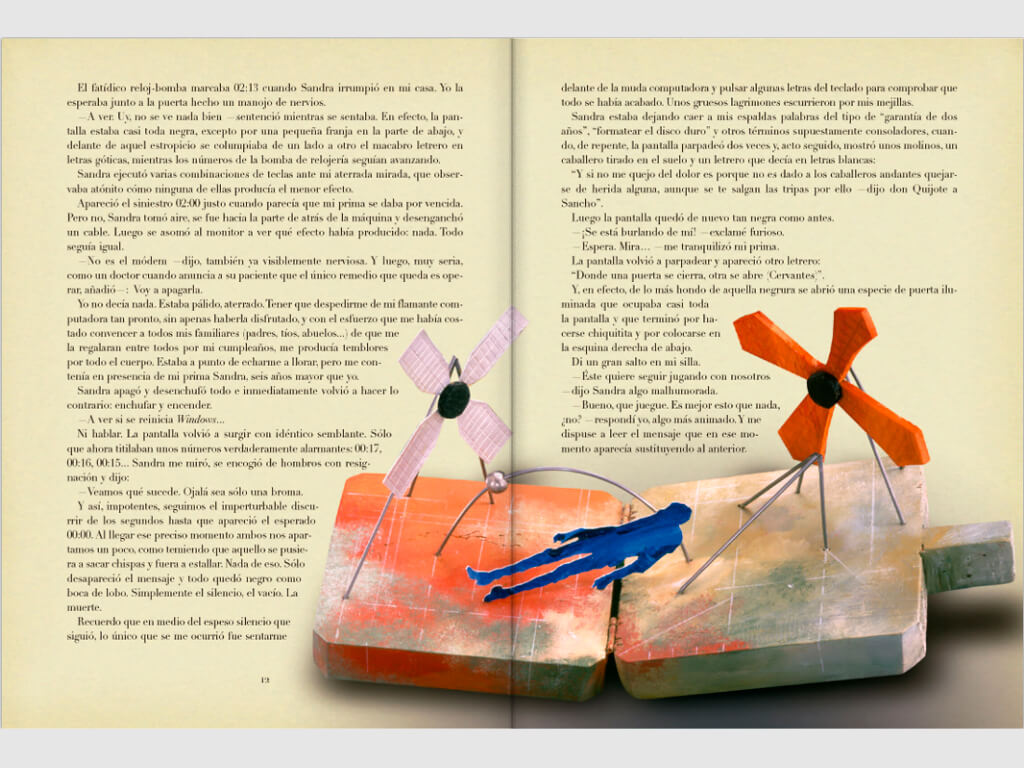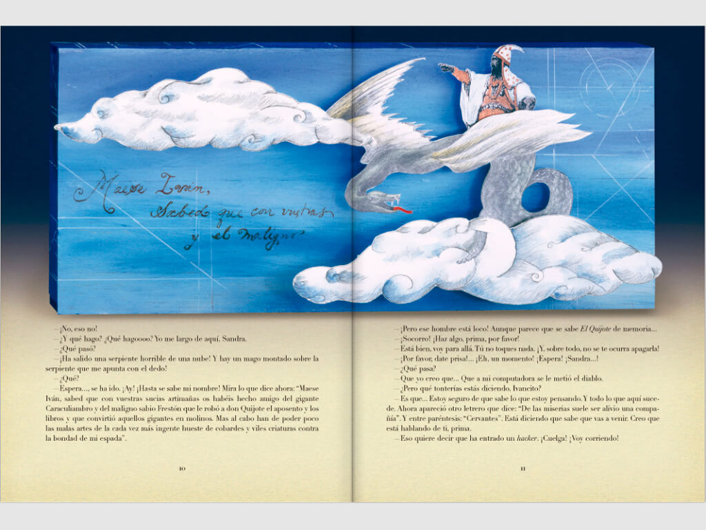 Iván debe hacer un trabajo sobre Cervantes. Con pocas ganas de investigar, intenta bajar toda la información de Internet. En el momento de hacerlo, aparece un hacker vengador que, aparentemente, lo hace sufrir, pero que en realidad le abre la puerta a un nuevo mundo. Con imágenes en tercera dimensión y aventuras caballerescas podrás acercarte a la particular mirada de El Quijote y algunas de las obras de Cervantes.