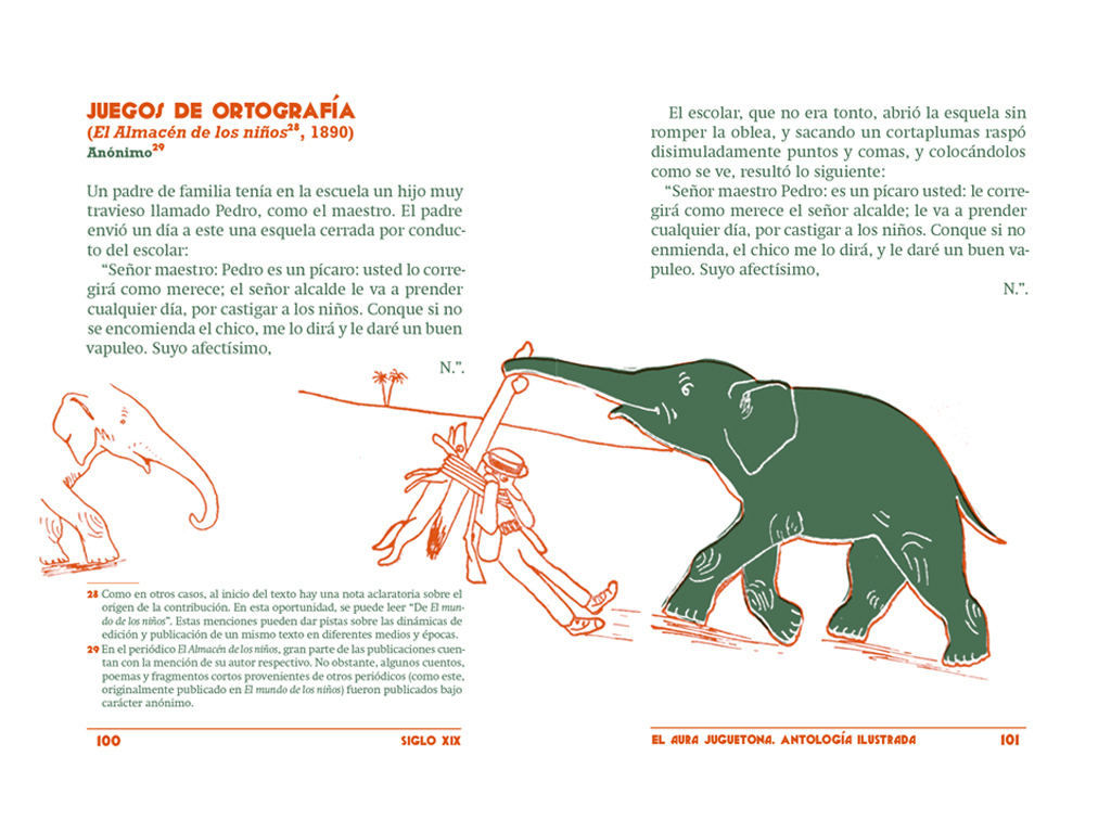 El aura juguetona rememora el espíritu travieso y lúdico que impregnó los primeros intentos de constituir una literatura para niños en nuestro país. En un momento en el que la oralidad y la escritura aún no habían establecido sus límites, la cultura de la prensa escrita se vuelve un escenario que construye un nuevo lector: el niño. Así, esta antología tiene el doble propósito de acercar a los pequeños a las lecturas de sus abuelos mediante una propuesta ilustrada y expandir los horizontes de investigación en el campo de la historia de la literatura infantil. Para ello, el lector se encontrará con un estudio crítico que explica los valores y las ideas que constituyeron los imaginarios históricos de la infancia durante el ocaso del siglo XIX y los albores del siglo xx.