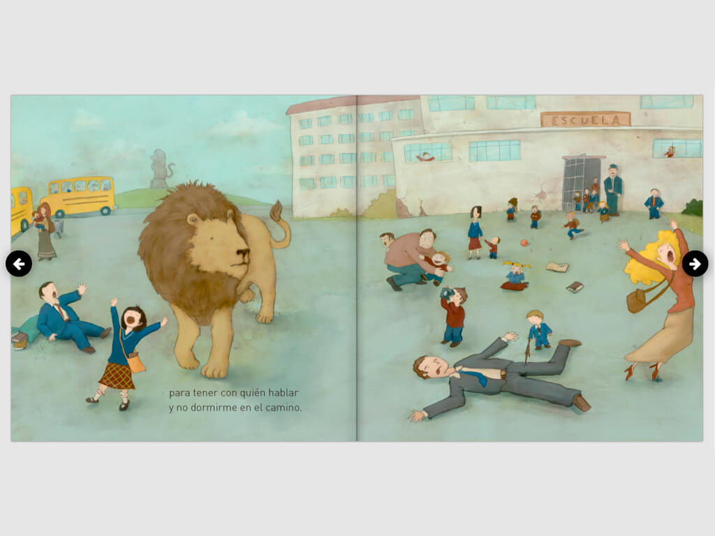 Hay un león que acompaña a una niña pequeña, que va con ella de la escuela a su casa, a la tienda y al parque. El león está y no está ahí. Está, y no, hecho de una fantasía que encubre la nostalgia, la ausencia y una ternura que no encuentra dónde posarse.