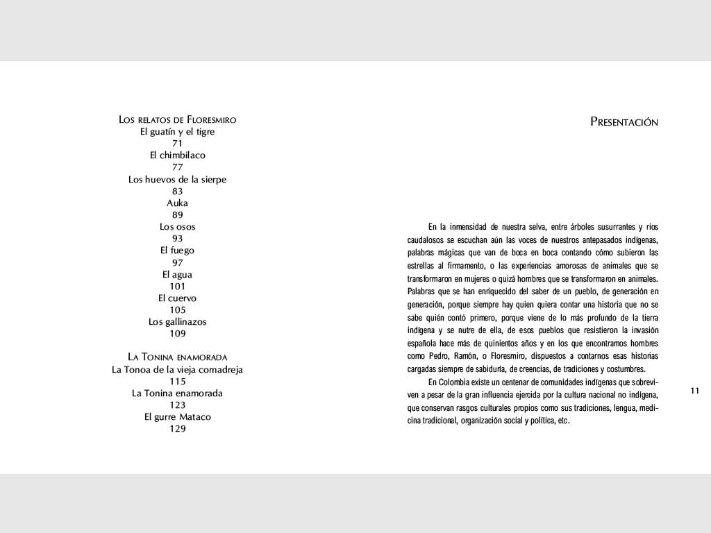 En la inmensidad de la selva, entre árboles susurrantes y ríos caudalosos se escuchan aún las voces de nuestros antepasados indígenas, palabras mágicas que van de boca en boca contando cómo subieron las estrellas al firmamento, o las experiencias amorosas de animales que se transformaron en mujeres o quizá hombres que se transformaron en animales. Palabras que se han enriquecido de generación en generación, porque siempre hay quien quiera contar una historia que no se sabe quién contó primero.