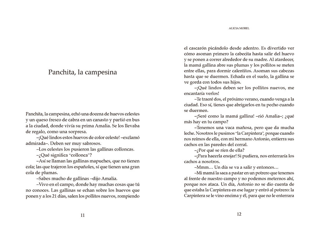Estas nueve historias nacieron de los relatos de la Panchita, una campesina que recuerda su niñez en el campo entre gallinas, pavos, vacas y patos. Pero eso no es todo, porque junto a sus pequeños hermanos, nuestra protagonista también verá tortillas voladoras, lenguas de fuego, mujeres que parecen brujas y agua como oro. Alicia Morel nos entrega una muestra más de su talento con este maravilloso nuevo libro que encantará a todos los niños y a quienes todavía sueñan con los días que se fueron.