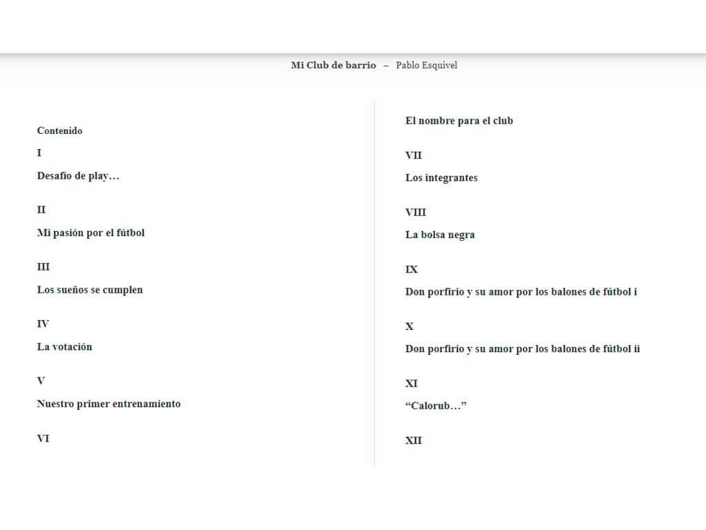 Este libro trata de un grupo de niños que decide formar su propio club de fútbol, a través del cual viven distintas situaciones, la mayoría de ellas simpáticas y divertidas, historias con las cuales el lector seguramente podrá identificarse, si cuando pequeño tuvo un grupo de amigos de su edad con los cuales hicieron más de alguna travesura. También, al leer esta novela, se emocionarán a través de la amistad incondicional que solo puede encontrarse en un grupo de amiguitos. El valor de la amistad y la familia son el eje de esta obra.
