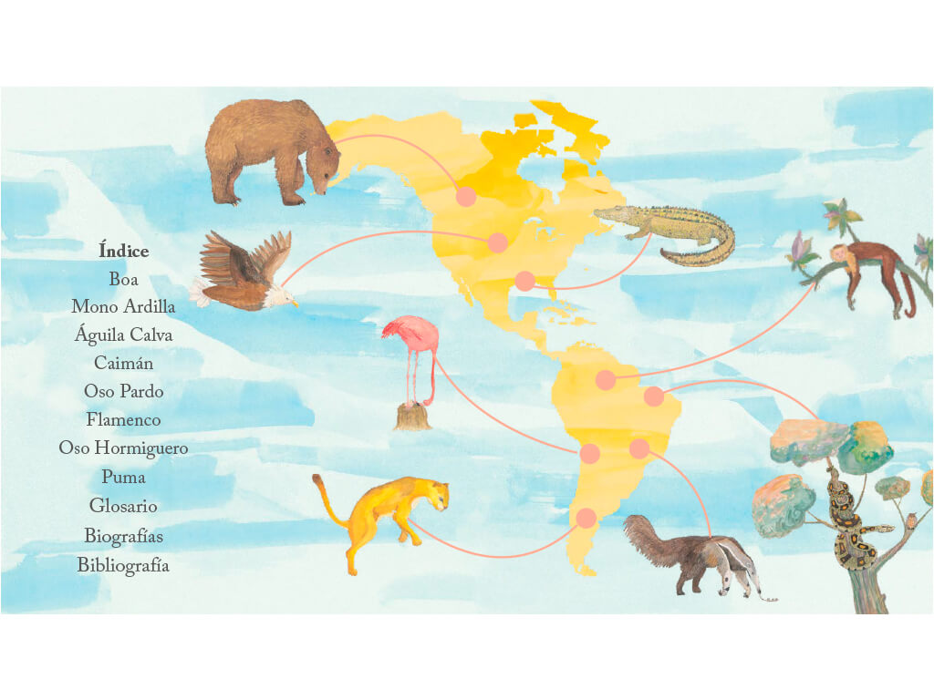 Se presentan distintos animales del continente americano, acompañados de llamativos textos en rima. Un libro destinado a niños y niñas en etapa preescolar, como complemento a las materias curriculares establecidas.