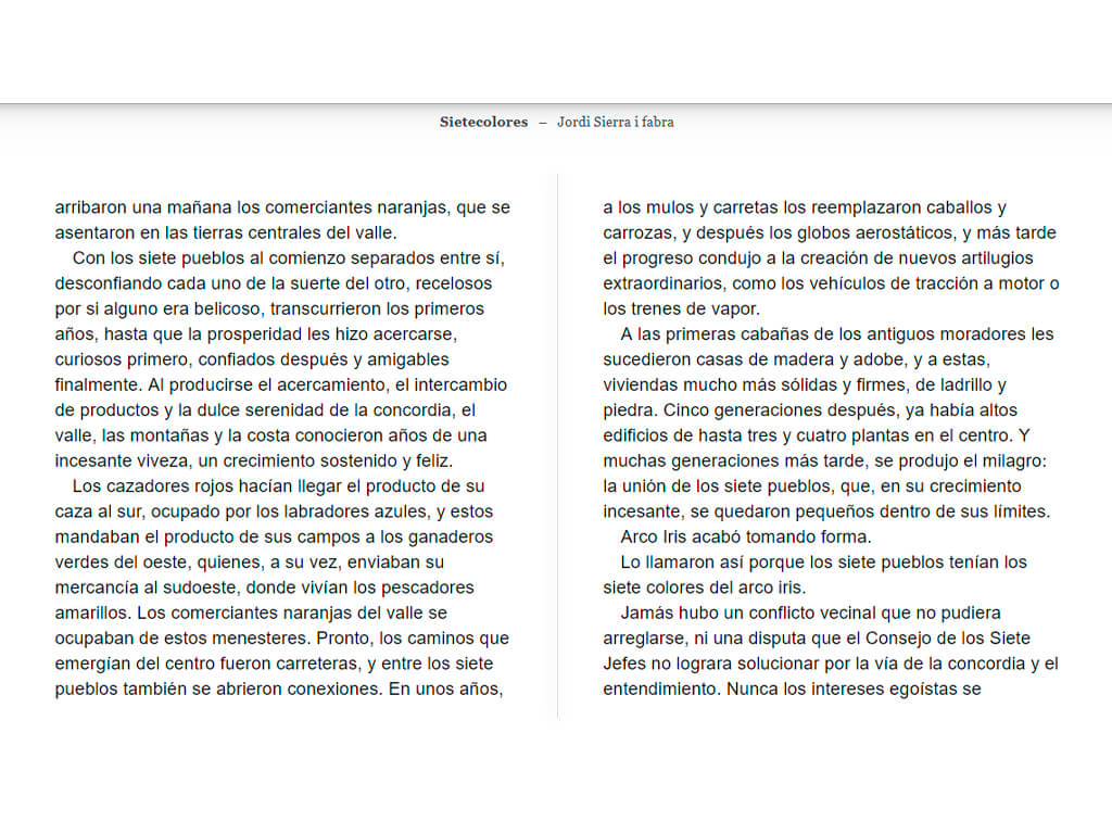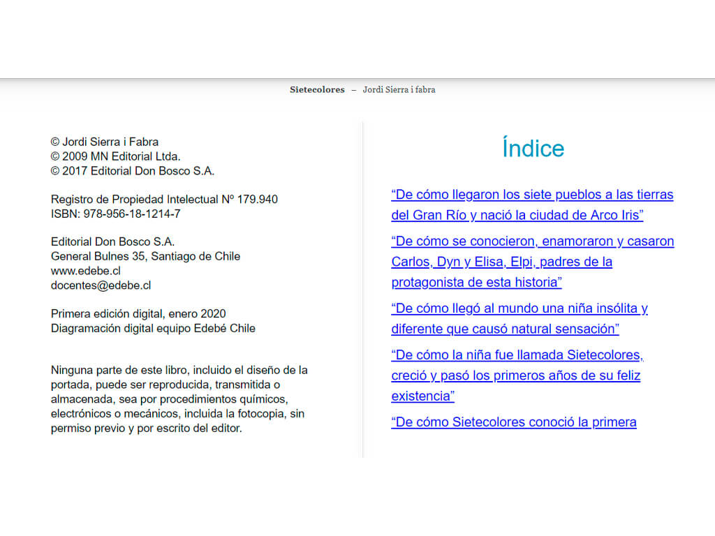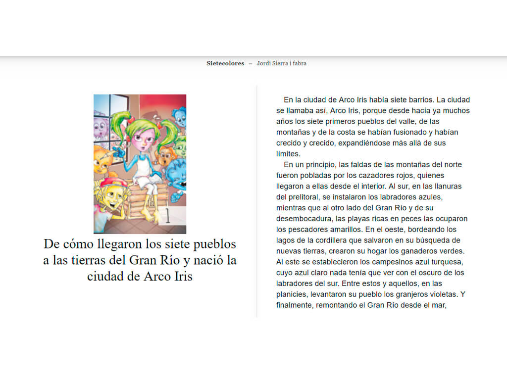 Todo se complica para la niña que protagoniza esta historia cuando comprende lo difícil que resulta convivir entre los habitantes de un país tan singular como lo es Arco Iris, aunque ella es más singular todavía, pues nació con siete colores en su cuerpo. Una historia de conmovedora actualidad, en la que se demuestra lo problemático de la integración entre las personas cuando son diferentes, mediante una gran belleza argumental y valórica.