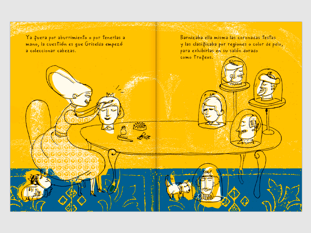 La bella Griselda era una mujer fatal. No había quien no perdiera la cabeza por ella; así que siempre estaba sola en su palacio, cultivando su belleza. Harta de tanta soledad, invita a un príncipe medio miope con la esperanza de que no note su mortal belleza… y casi le dio resultado. Tras ese fugaz encuentro, la princesa será víctima de su propio poder.