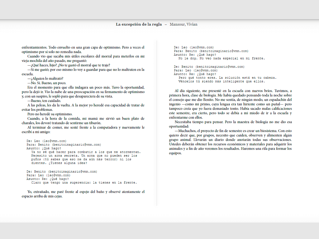 Leo está cansado de ser el niño más débil del salón. Pasa el tiempo leyendo enciclopedias y comparándose con seres parecidos a él. Por las tardes le escribe correos electrónicos a Benito, su amigo imaginario. Pero un buen día, con la ayuda de la niña más lista de la clase, Leo consigue ganarse el respeto de todos.