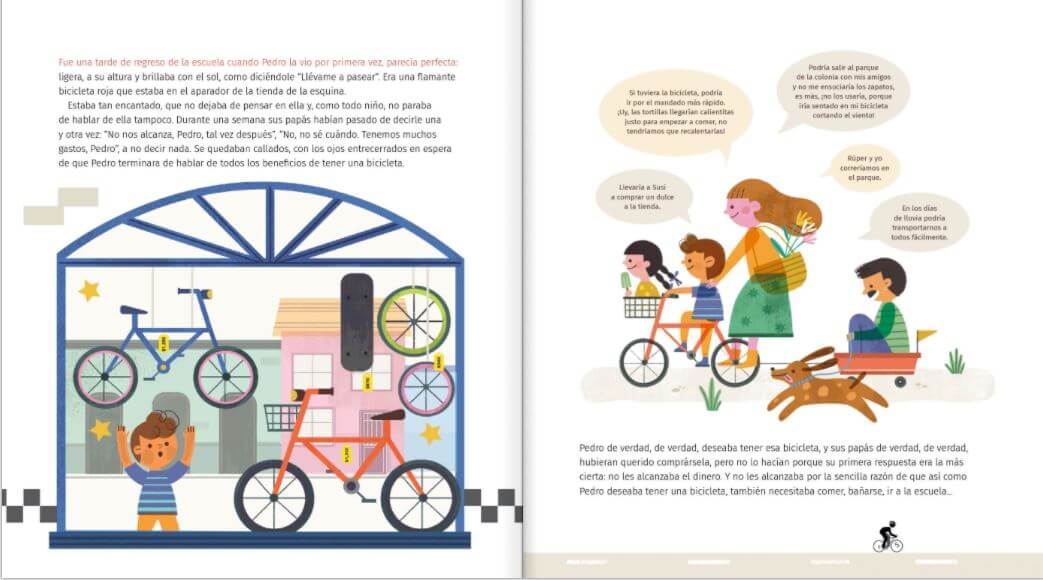 Comprar todo lo que deseamos no siempre es posible. Pero sí es posible usar la paciencia y el ingenio para idear la forma de conseguirlo. Eso aprendió Pedro el día que sus papás no pudieron comprarle una bicicleta y tuvo que trazar su propio camino hacia el ahorro. Sigue sus pasos y toma la ruta para tener una sana relación con el dinero.