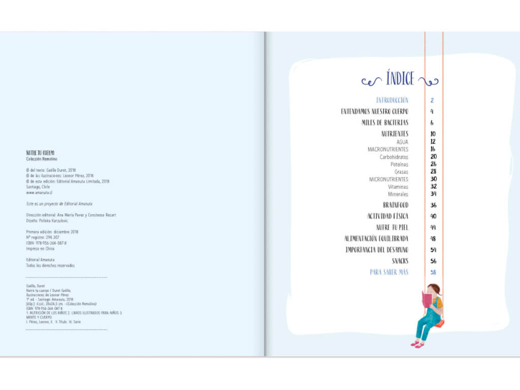 Comer es una necesidad básica sin la cual los seres humanos no podríamos pensar, movernos o estudiar. Comemos todos los días, varias veces al día y muchas veces comemos sin pensarlo, por costumbre, sin darnos cuenta de lo importante que son estas pequeñas decisiones. Se nos olvida que lo que ingerimos le permite a nuestras células funcionar, y que cada bocado tiene un papel fundamental en nuestra salud. Este libro contiene información y consejos que ayudan a ingerir los alimentos que el cuerpo y mente necesitan. En este libro se explican conceptos básicos de la alimentación sana, desde el proceso digestivo, las bacterias, las vitaminas, los minerales hasta la importancia de la actividad física y consejos que permiten organizar desayunos, almuerzos y cenas en forma sana, entretenida y equilibrada.