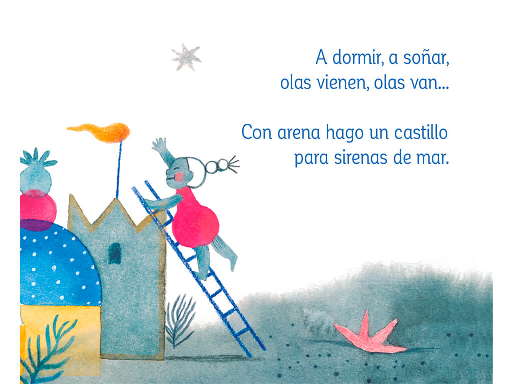 Este libro, con texto e ilustraciones marineras, evoca las canciones de cuna y quiere acompañarnos en el momento mágico y tranquilo de irse a dormir. Todo en él invita a la contemplación y el arrullo acompasado. Sus palabras, que van y vienen como las olas, poco a poco nos transportan al lugar donde los hermosos sueños se alimentan de aventuras de agua y caballitos de mar.