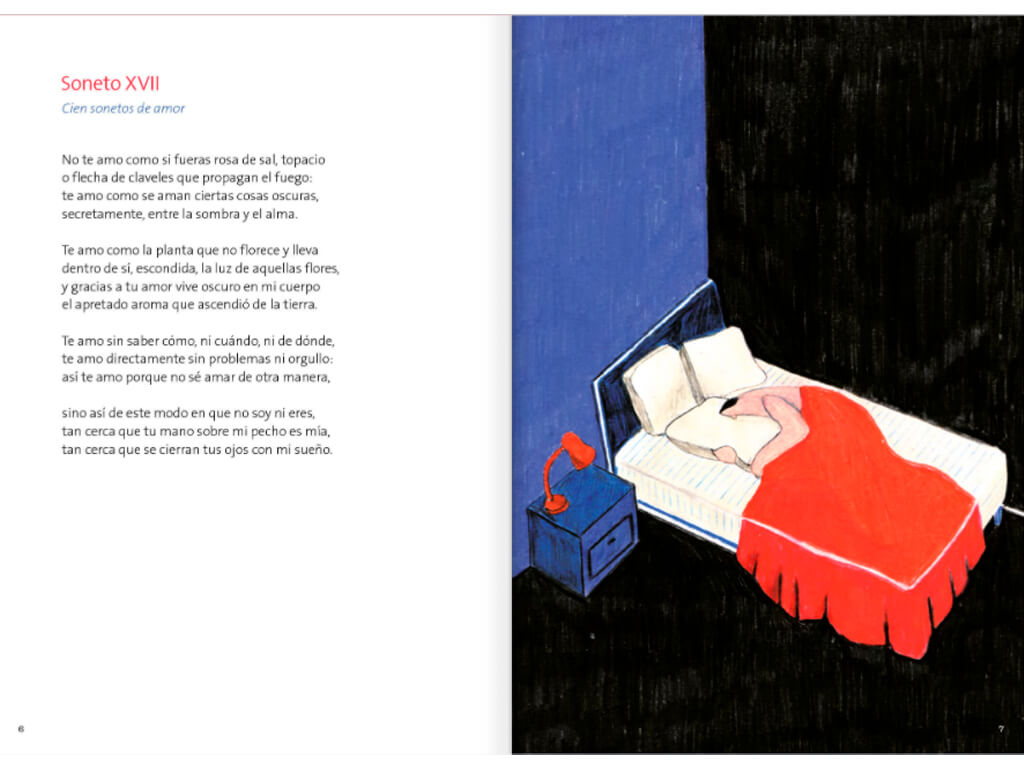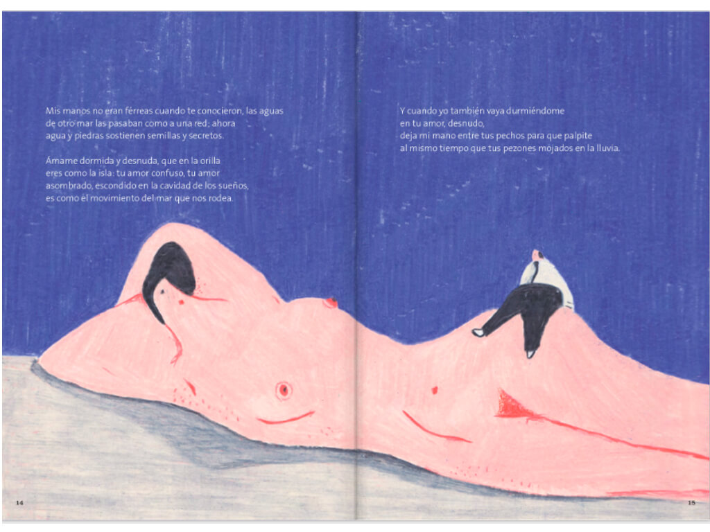 En torno a mí estoy viendo tu cintura de niebla y tu silencio acosa mis horas perseguidas, y eres tú con tus brazos de piedra transparente donde mis besos anclan y mi húmeda ansia anida.