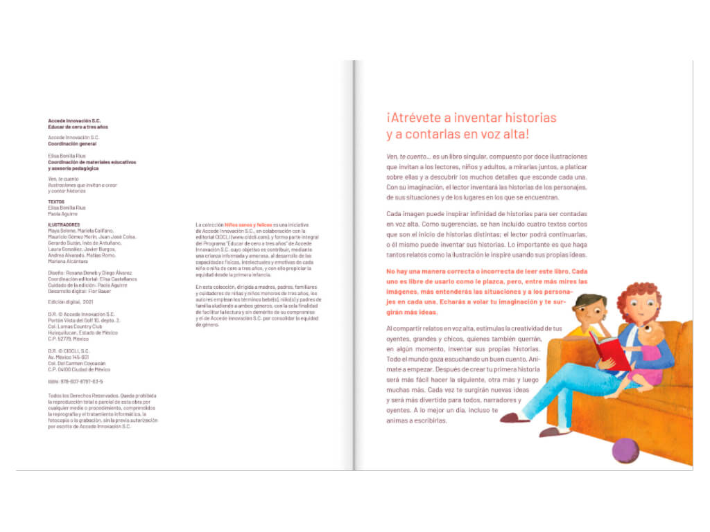 Todos disfrutamos al escuchar una historia. Y también podemos disfrutar al contarla. Este libro pone a disposición del lector doce coloridas ilustraciones que despiertan la imaginación e inspiran a crear historias. Con esta guía, el lector aprenderá a hacer un relato para contárselo a quienes lo rodean, lo que ayudará al desarrollo de su imaginación y la de sus hijos o familiares.
