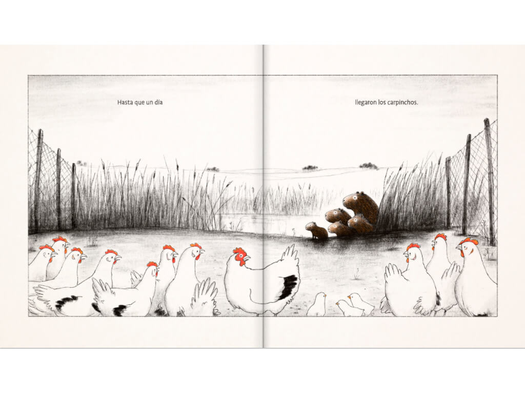 El día en que llegaron aquellos animales extraños, grandes y peludos, a nadie le quedaron dudas: ¡NO! No había lugar para ellos. Pero los carpinchos no podían regresar a su hogar, pues la temporada de caza había comenzado… Así, carpinchos y gallinas deben entablar una convivencia que será una revelación.