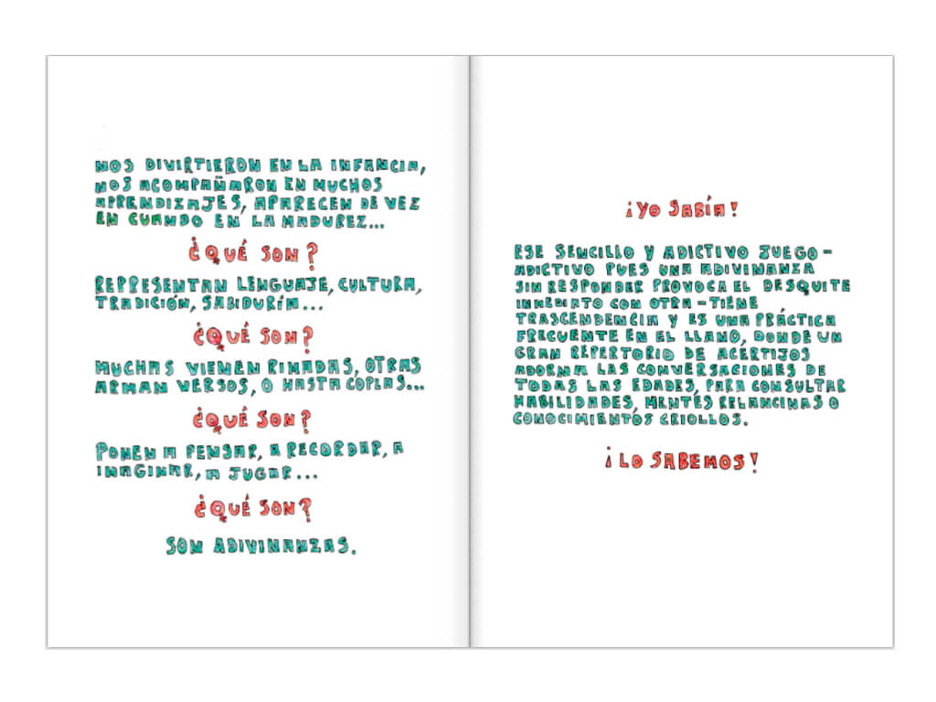 ''Tiene corona y no es reina, se para y no tiene pies, tiene escamas y no es pescado, tiene ojos y no ve.'' Un libro para pensar y jugar que recopila adivinanzas tradicionales y populares del llano