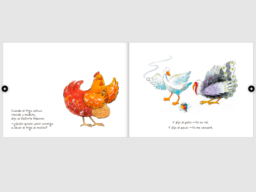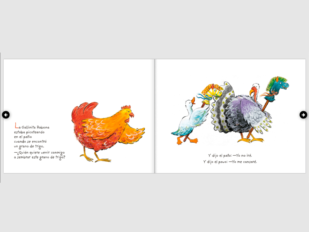 Cuento tradicional. La gallinita invitó al pato y al pavo a sembrar un grano de trigo, pero el pato le dijo: ''no iré'' y el pavo: ''me cansaré''.