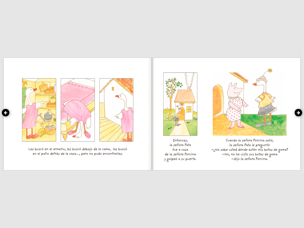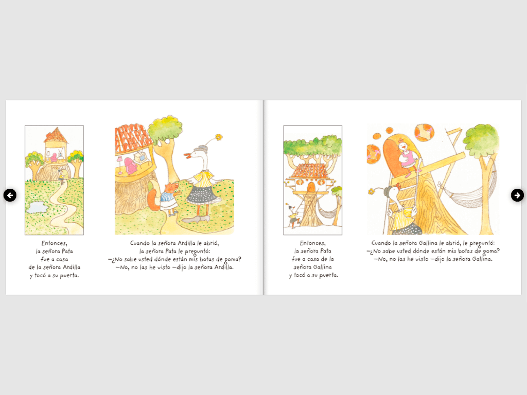 Cuento tradicional. La señora Pata tenía el presentimiento de que llovería, así que desde muy temprano comenzó a buscar sus botas de goma...